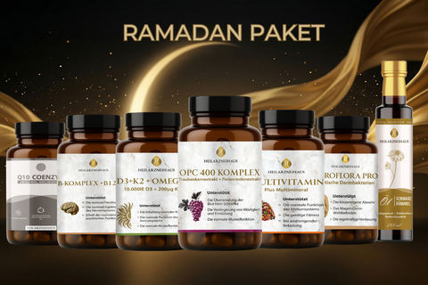 Warum ist unser Produkt besonders? Das Heilarzneihaus Fasten-Detox-Entschlackung Paket bietet dir eine umfassende Lösung, um das Beste aus deinem Ramadan herauszuholen. Während viele Produkte auf dem Markt sich nur auf einen Aspekt des Fastens konzentrieren, kombiniert unser Paket hochwertige Vitalstoffe mit einem speziell entwickelten Ernährungsplan, der nicht nur deine Energie und Vitalität unterstützt, sondern auch dein geistiges Wohlbefinden fördert.